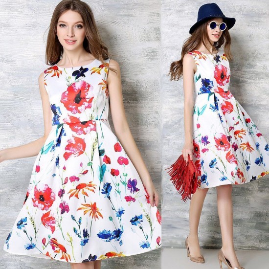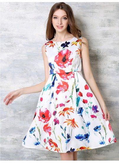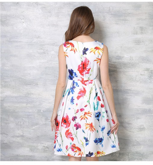 パーティードレス ひざ丈 ワンピース ノースリーブ 花柄 フレア ホワイト さわやか 大人 可愛い 上品 サマーパーティー お呼ばれ drgz2312