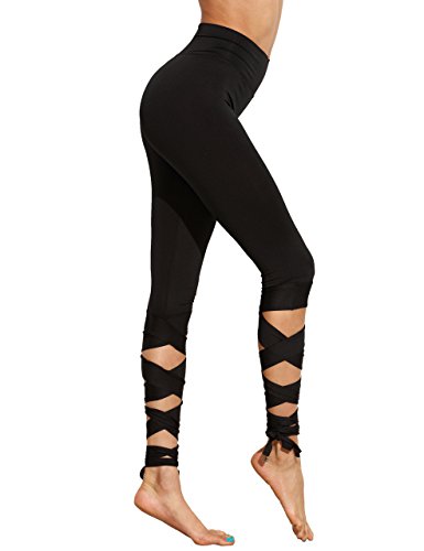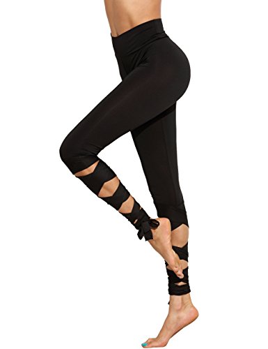 -. Title : SweatyRocks Women Legging Cutout Tie Cuff Slim Yoga Pants Jogger Workout Tights