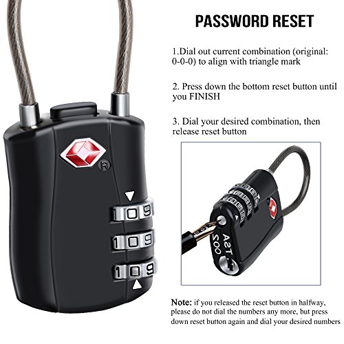 How to Reset Your Private Combination 1, Dial out current combination (original: 0-0-0) to align with triangle mark 2, Press down the bottom reset button by a pen or any other tools until you FINISH 3, Dial your desired combination, then release reset button 4, Hard press the top unlock button to try it out Note: if you released the reset button in halfway, please do not dial the numbers any more, but press down reset button again and dial your desired numbers Package: 2x locks If any questions, please do not hesitate to contact us, we¡?ll provide our best customer service within 24 hours 0
