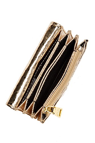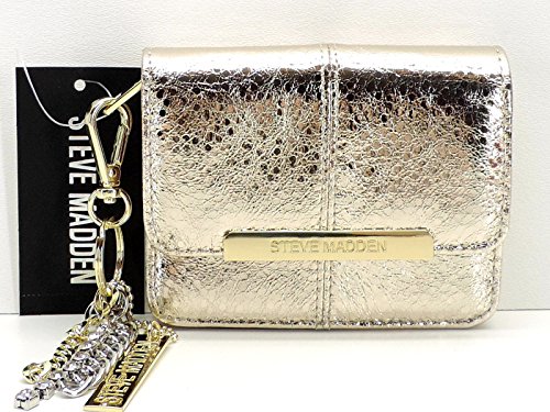 Product DescriptionAuthentic Steve Madden Accordion Small Wallet in a gold metallic distressed faux leather style finish. Detachable key ring clip accent.0