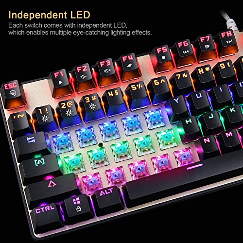 -. Title : [2017 Newly Updated ]SADES K10 LED Backlit Wired USB Mechanical Gaming Keyboard Metal Panel with Blue Switches(Black&Gold)