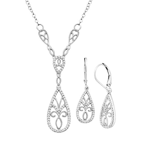 -. Title : 1/3 ct Diamond Necklace & Earring Set in Sterling Silver