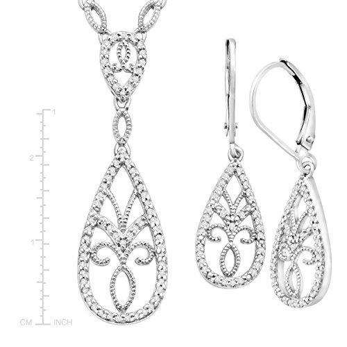 -. Feature : 1/3 ct Round-Cut Diamonds / Color I-J, Clarity I2-I3 / Sterling Silver / Earrings Measure 1 5/16 by 3/8 Inches / 18-Inch Necklace Total Length