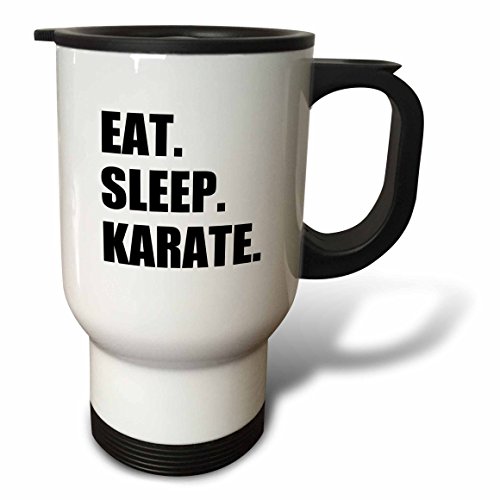 3dRose tm_180415_1 Eat Sleep Karate Martial Art Enthusiast Gift Black Text Typography Travel Mug, 14-Ounce, Stainless Steel