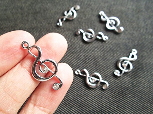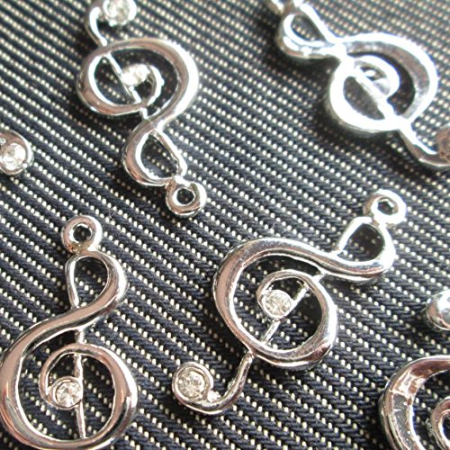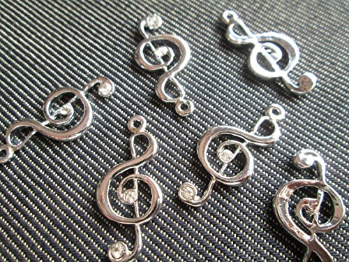 Np Supplies 6 Diamond Liked Treble Clef Charms Tibetan Silver Music Charm Silver Tone (NS220)