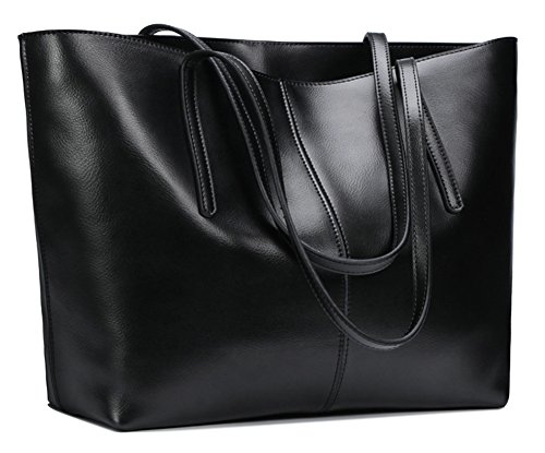 Beallure Women's Leather Large Capacity Tote Handbag for Shopping (Black)