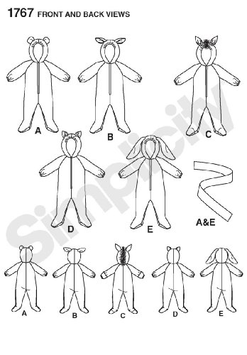- Title : Simplicity 1767 Size A (1/2-1-2-3-4) Toddler's Animal Costumes and Hats Sewing Pattern, Size A (XS-S-M-L)