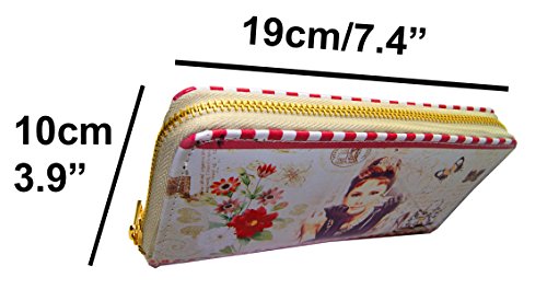 Product Description We have a 100% Satisfaction Guarantee:We want all Customers to be 100% Satisfied with their Purchase.If you are not 100% happy with your order.Please get in touch with Us -- Officially licensed Audrey Hepburn Purse, Jean Elion Design. This is ideal for keeping your money card and belongings safe. Perfect size to take out and put in bag! Each Purse is zip fastening and has 2 main compartments as well as 4 card holder. Front graphics of Audrey Hepburn on the purse in a beautiful red dress. Benefits : Purse measures approx. 7.4" (W) x 3.9" (L) or 19cm (W) x 10cm (L)- inside compartments zip up pouch- Purse features 3 compartments one with zippered top.- High quality design and materials- Composition: inside 100% polyester outside 0 PU soft touch - (Fully lined interior with black fabric)- Officially licensed- Includes short hand strap.- High quality for an unbeatable price! - Durable, Fashionable, Soft, Easy to clean - Feedback: Please contact me 'before' leaving feedback if there is any concern or problem with your order. There is never any need for you to be an unhappy customer, or for there to be any misunderstandings. 0