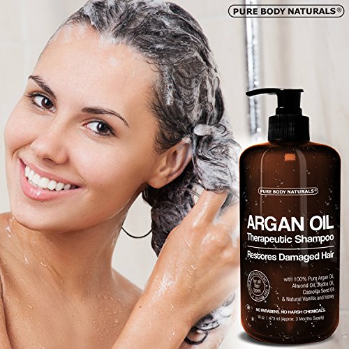 -. Title : Argan Oil Shampoo Restores Damaged Hair - Argan Oil for Hair, Increases Shine and Deeply Nourishes - Safe for All Hair Types and Color Treated Hair - 16 oz Bottle with Pump