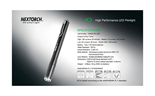 -. Title : Nextorch K3 180 Lumen CREE XPG R5 LED Multi-Mode 'Clip and Go' Penlight with 2 x AAA Batteries