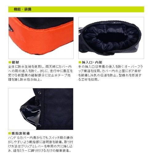 fk094igrjs設計段階から最大限コンパクトである事とデザイン性を重視し、カバー全体に防水生地を使用したスタイリッシュなハンドルカバー。 製造国:中国 素材・材質:防水生地 商品サイズ:約145(幅)×240mm(高さ) 重量:240g 仕様:左右1セット 付属品:ミラー固定用紐※お届け地域により、別途運賃がかかる場合やお届けできない場合がございますので、お問い合わせ下さい。