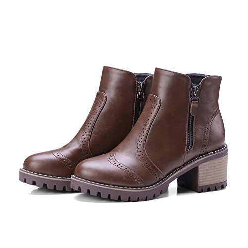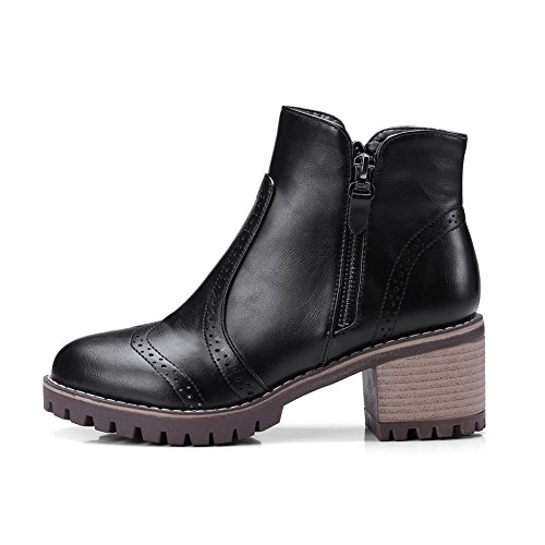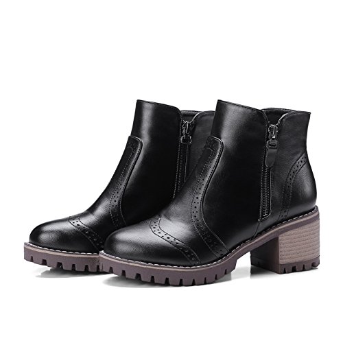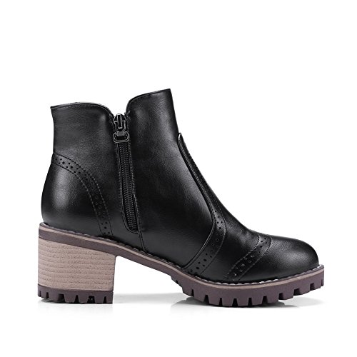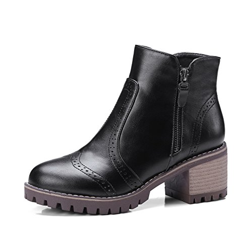 (BalaMasa)/Women's/Lace-Ups/DIRECT FROM USA/BalaMasa Womens Hounds-Tooth Chunky Heels Ankle-High Urethane Boots ABL10482