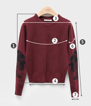 尺码 ①衣长 ②胸围 ③肩宽 ④下摆围 ⑤袖长 ⑥袖臂围 ⑦袖口围