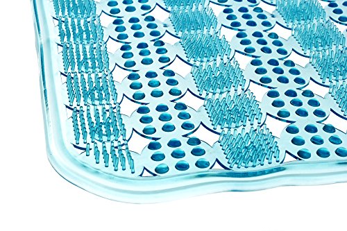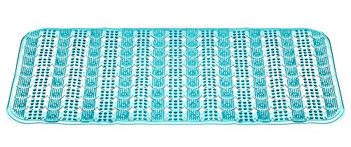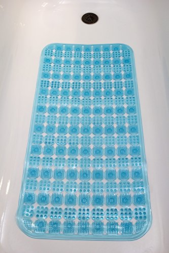Anti Slip Massage Bathtub Mat and Shower Mat Long (31x15 in)-Non Slip Suction Cups Machine Washable Anti Bacterial Mold/Mildew Resistant Eco Friendly. Blue. By DonHill