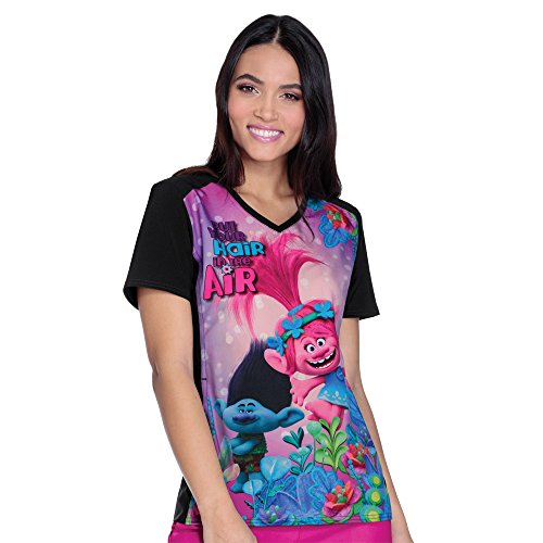 Tooniforms By Cherokee Women's V-Neck Contrast Back Trolls Print Scrub Top