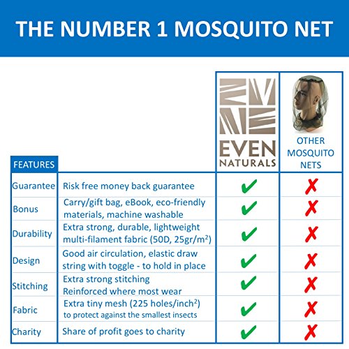 100% MONEY BACK GUARANTEE: Customer satisfaction is our top priority. All EVEN Naturals® products come with a 1 month guarantee: if you experience ANY problems with your Mosquito Net, we refund your entire purchase instantly. Buy now RISK FREE today and experience the EVEN Naturals® difference!