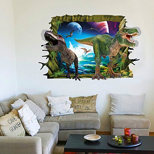 RRRLJL 3D Jurassic Park Dinosaur Wall Art Decor Home Wall Decal Sticker for Kids Children Room(35.2" × 23")