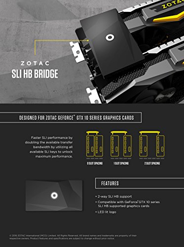 Maximize your gaming performance with the ZOTAC SLI HB Bridge. Faster SLI performance is achieved by utilizing all available SLI keys to double the available transfer bandwidth. .