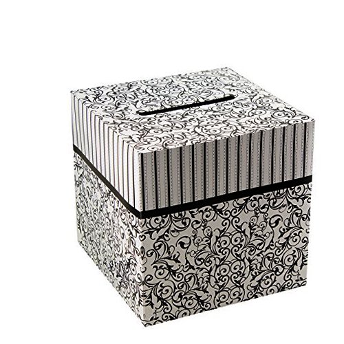 Collect cards at your wedding reception or ceremony in this stunning black and white cardboard box. The box measures 12" x 12" Assembled. Simple assembly required. 1 Box per package.
