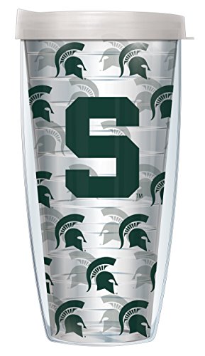 Michigan State University Logo Pattern On Clear Super Traveler 22 Oz Tumbler Mug with Lid