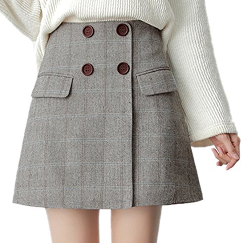-. Title : cnstone チェック柄 スカート ミニ丈 台型スカート 秋冬 カーキ グレー Aライン ハイウエスト ウエストファスナー レディース