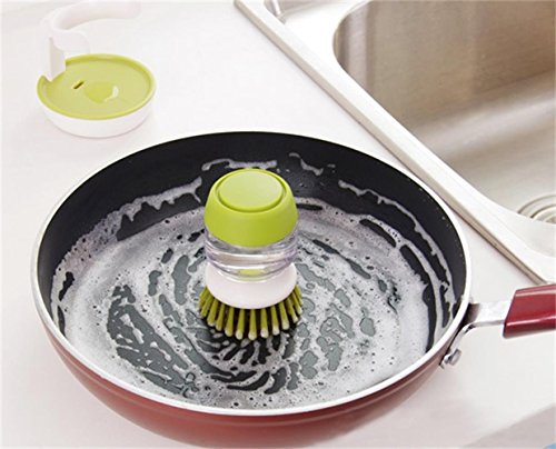 1:Quality:AAA+++ 2:Merely press the soft top to release soap when you want it. 3: A clear window allows you to monitor soap level. 4:This is a specially designed cleaning brush which holds cleaning fluid or detergent. 5:Perfect for cleaning pots and pans. Can also be used for just about any cleaning or scrubbing purposes.