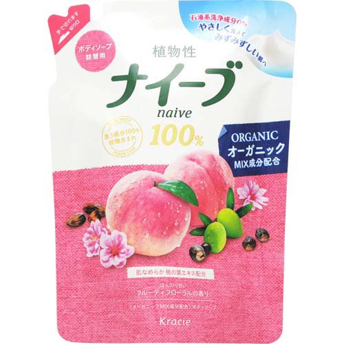 "400 ml for refreshing fragrance of fruity floral with naive body soap peach leaf extract" is a body soap (for refill) which guides 100% of washing ingredients to plants, gently washes and leads to a fresh skin.