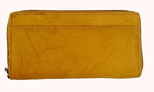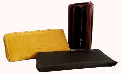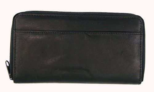 Ladies leather wallet with single zipper style - 7575 BLACK