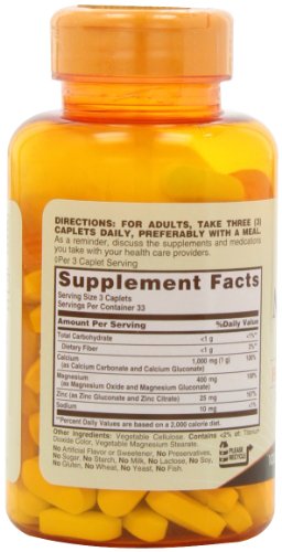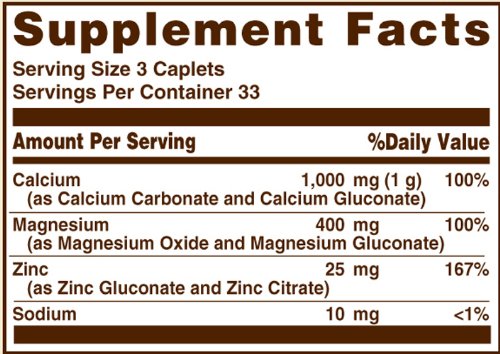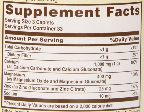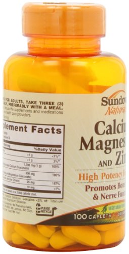 -. Title : Sundown Naturals Calcium, Magnesium and Zinc Supplement, 100 Tablets
