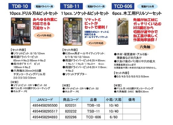 【商品名】(業務用2セット) TRAD 木工用ドリルソーセット/先端工具 【電気ドリル用/6本組×10セット】 六角軸 TCD-606 〔DIY/大工道具〕