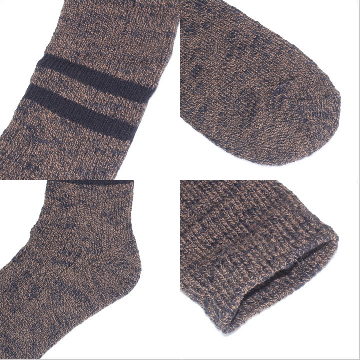 立体感のあるミックスカラーで秋冬スタイルに合わせやすいミドルソックス。 くるぶし周りに2本ラインが施され、パンツの裾からチラ見せコーディネートも楽しめ様々なパンツに合わせやすい一足。 また、柔らかい素材感で圧迫感がなくストレスのない履き心地が病みつきになるオススメアイテムです。