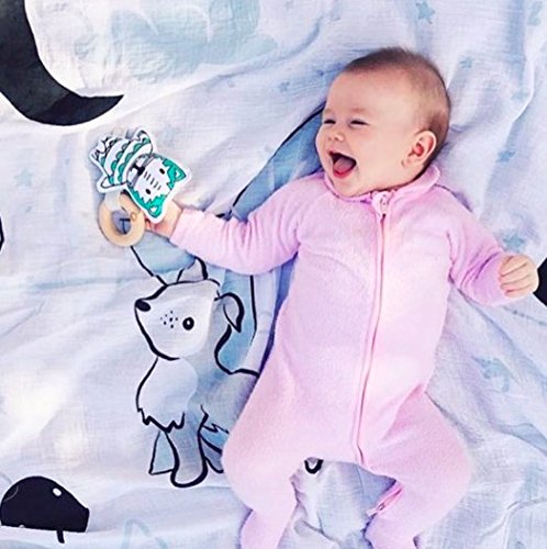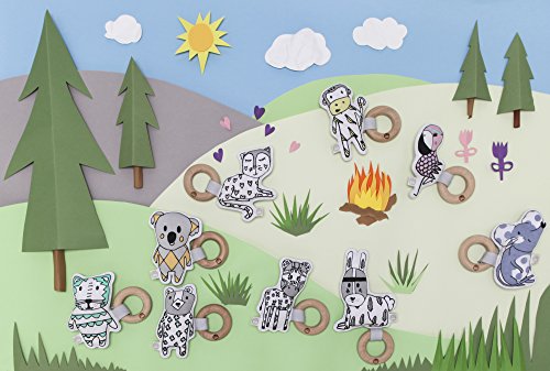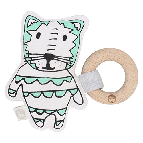 Kippins' organic cotton KipletTM rattles are very Kippiny - perfect for little movers and shakers who love their Kippins! They're gentle on new skin and planet friendly. With the Zzzzs flying into the sky, the Kippi Sun sets into a tiger's paw. When you're beyond the yawns, Dash Kippin finds it's the perfect night-light to guide his adventures. Green, white and black tiger rattle with grey reverse.Feature