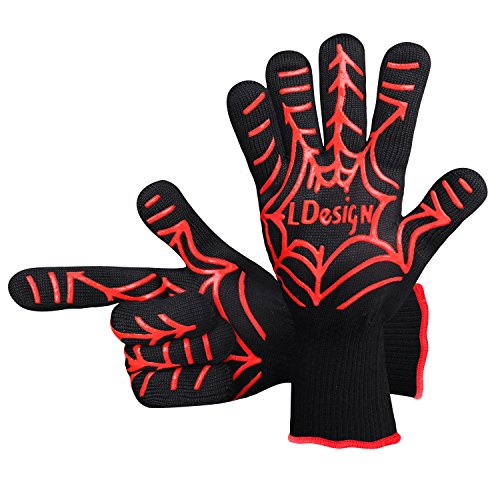 - LDesign premium oven grill gloves are made of high temperature resistance material that can withstand extreme temperatures up to 932℉ (500℃). Nomex and Kevlar on exterior can slow the rise of temperature when handling hot items effectively.
