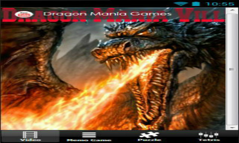 - Feature : Features some of the best android puzzle and casual games supporting all popular mobile devices. The games are very simple to learn, easy to play and are designed for all touch screen mobile devices. / There are 3 exciting Games! / Game 1-Memory Game. Test your memory by revealing the blocks to match similar pictures / Game 2-Puzzle Game. Shift each block to the correct place and reassemble the picture. / Game 3-Block Game. Change and move the blocks to fit each other. / Tip on Scoring: / The more blocks you clear, the higher you will score. / Other features: / You can pause the game at any time and resume later. / We have put the best collection of Dragon Mania Ville videos including: / - Dragon Mania Games