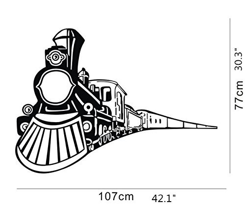 -. Title : Vehicle Train Wall Stickers Decals - Train Is Coming Wall Decor Art Vinyl Removable Black Graphic Steam Train Silhouette Home Wall Mural for Kids Teen Boys Girls Children Bedroom Living Room Baby Nursery Olivia