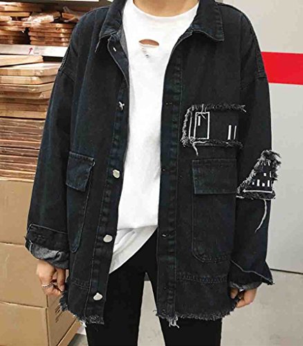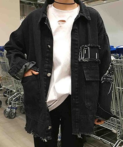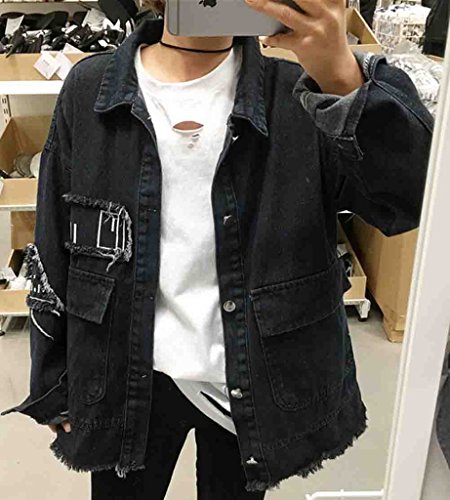 원본상품명: MengFan レディ?ス トップス コ?ト ジ?ジャン デニム スリム ジャケット 上着 韓版 百搭 上着ブ?ム ダブルポケット bf風 長袖Tシャツ 上着のカジュアルゆったりブラックE