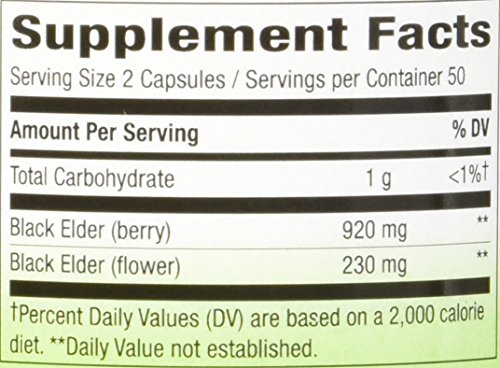 Natures Way Elderberry Capsule, 575 Mg - 100 per pack -- 3 packs per case. Premium Herbal Berries & Flowers Popular in Winter Certified 575 mg Dietary Supplement Elderberry (Sambucus nigra) was used by Native Americans in traditional winter season remedies. The berries and flowers are rich in flavonoids, which are believed to provide its therapeutic effects. Our Elderberry is carefully grown, tested and produced to certified quality standards. Shelf Life: 999 daysFeature