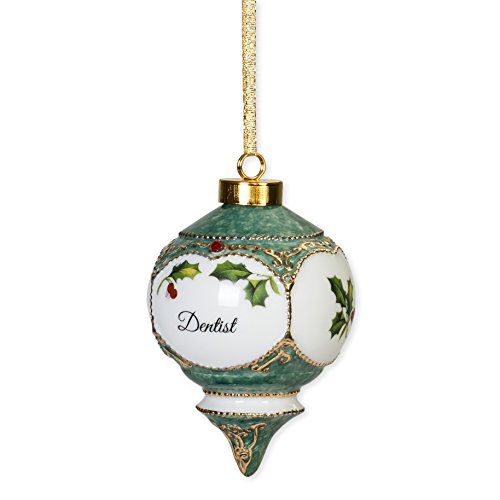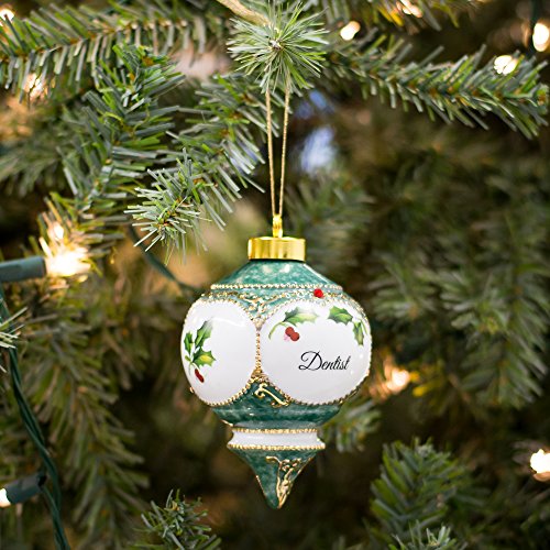 Dentist Festive Holly Berries Red Jewel Victorian 4.5 Inch Porcelain Ball Christmas Ornament
