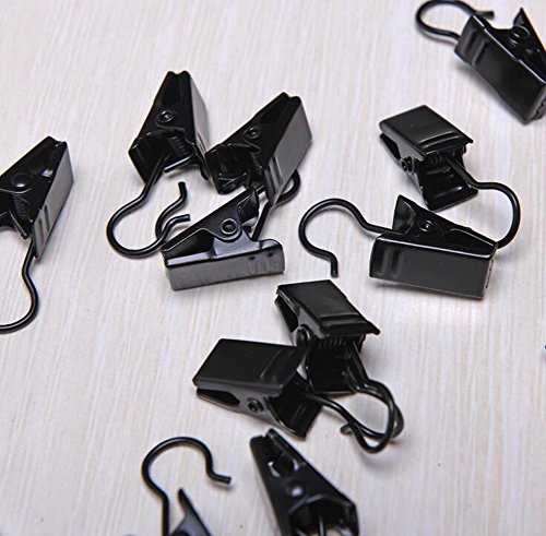 20 Packs Black Metal Clip Clamps Curtain Rod Hook Clips Curtain Drapery Clips Hanging S Hooks Clips