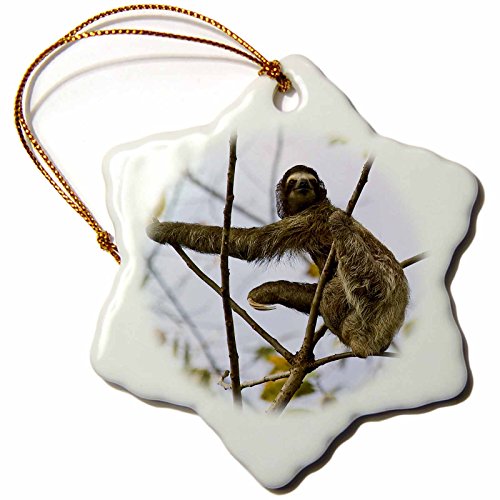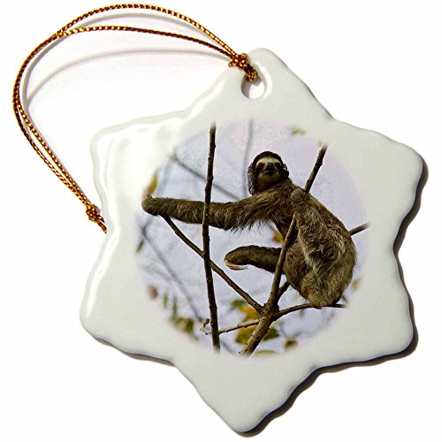 3dRose Three-Toed Sloth Bradypus Variegatus Snowflake Porcelain Ornament, 3-Inch