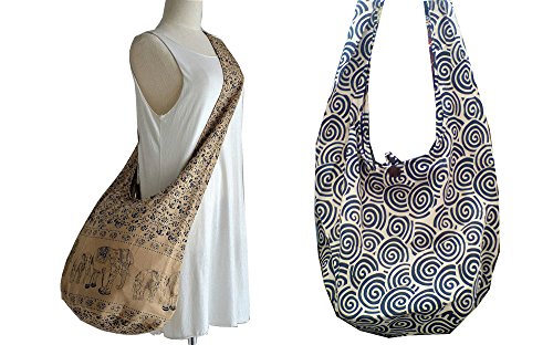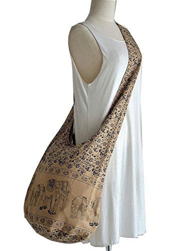 -. Feature : Bag Style Hobo Hippie. nice design bag cotton / Elephants and Swirl Prints / Measurements -- Wide: 18.5" -- Height: 13" -- Depth: 9.5" -- Strap: 23" (46" end to end) / Fabric: 100% Cotton -- Color: Olive -- Close/open: A zipper and a button -- Internal: A zipper pocket