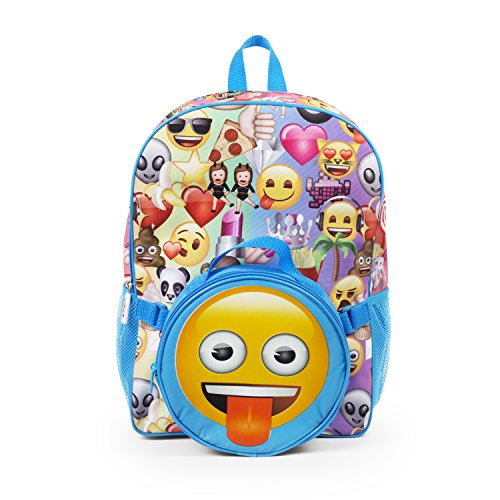 -. Brand : FAB Starpoint -. Color : Multi(Green/Pink) -. Department : girls -. EAN : 0688955857377 -. Feature : Includes a larger allover emoji print backpack with attachable lunch box / Well insulated lunch box smiley face with tongue sticking out and winking, holds food and drinks in thier place while she goes off to school or other activities / Backpack has one roomy zip compartment, loop handle, mesh side pockets for added storage / 100% polyester / Wipe clean, hand wash when needed -. Model : KAC27785737 -. ProductGroup : Sports -. ProductTypeName : LUGGAGE -. Size : Large -. Title : Emoji Emojitastic 16" Backpack with Insulated Lunch Kit -. UPC : 688955857377