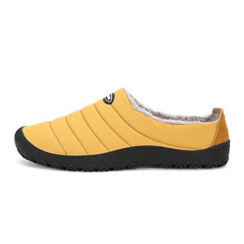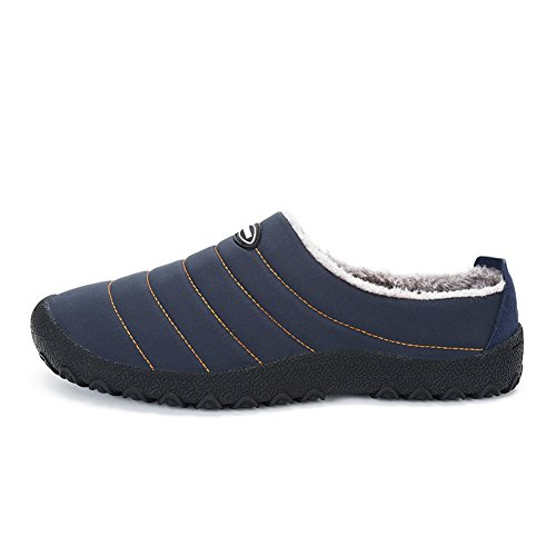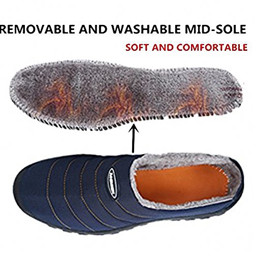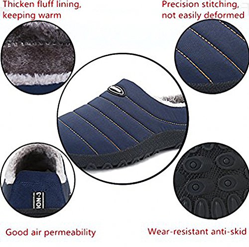 -. Feature : WARM & COMFORTABLE: The exquisite velveteen lining is comfortable and soft, keeping your feet dry and relaxed after a long day of hard work. The house slippers keep your feet warm and help you withstand the cold winter. / ANTI-SLIP CONSTRUCTION: The non-slip rubber outsole reduces the risk of slips and falls on hazardous surfaces, and the winter slippers can protect your feet from injures in snowy and rainy weather. / STURDY EVA INSOLE: The velveteen insole of the slippers is made from high-quality EVA. It is spongy, soft and not easily deformed. You can wear the slippers walking on the hard ground freely without discomfort. / SPECIAL HEEL: The half pack heel design makes the indoor slippers fit your feet more and not easy to slide down when you are walking around. It's very easy to take on and off. / IDEAL FOR INDOORS & OUTDOORS: Besides from being the best for all those times you just need to relax at your living room, the slip on slippers can be a perfect companion for outdoor use as well. The outdoor slippers are perfect for snowy days, rainy days, walking, walking dogs and other outdoor sports.