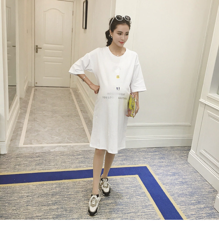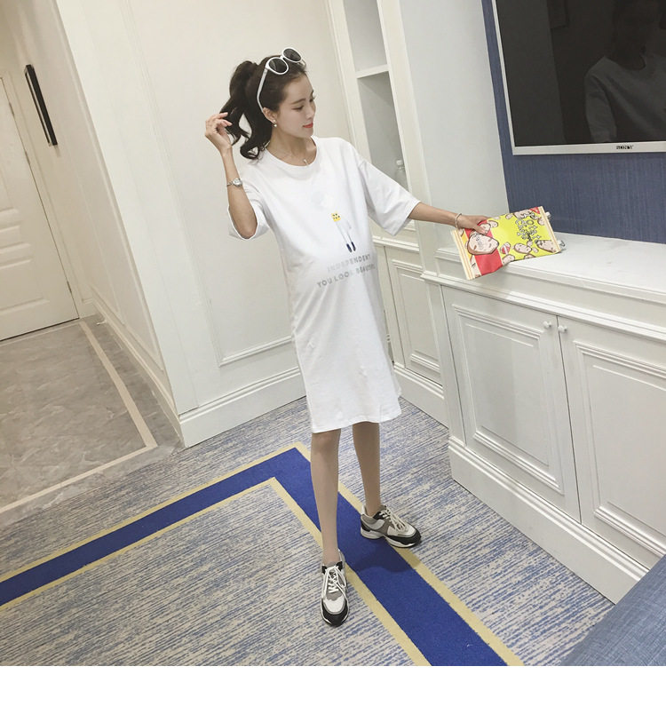 孕妇t恤新款韩版孕妇装春装上衣七分袖孕妇白色t恤