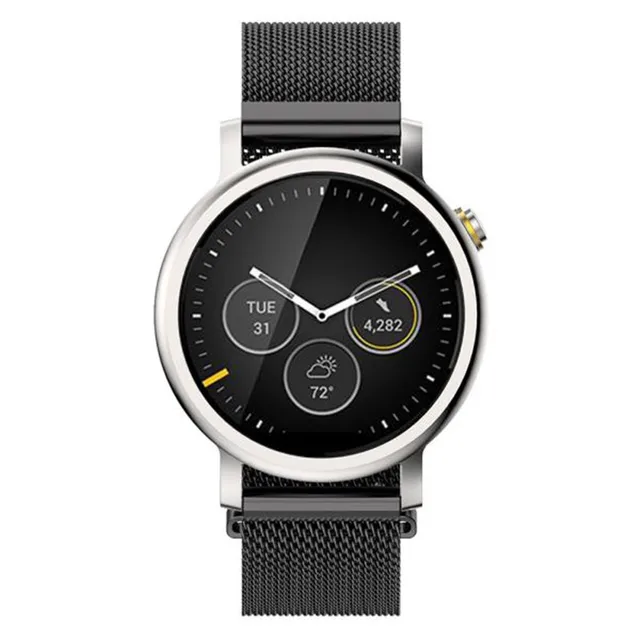상품 내용 Milanese 자기 루프 시계 스트랩 남성 링크 팔찌 스테인레스 스틸 밴드 짠 블랙 손목 시계 남성 46 미리메터 모토 360 시계 특징: