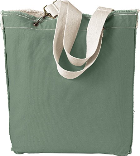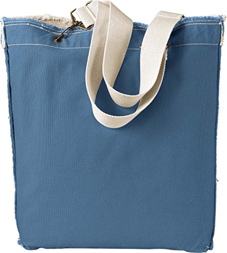 14 oz., 100% cotton canvas Natural canvas webbing straps Antique brass hardware Open main compartmentInside hanging pocket 13-1/2" width x 14" height x 3-1/2" depth0