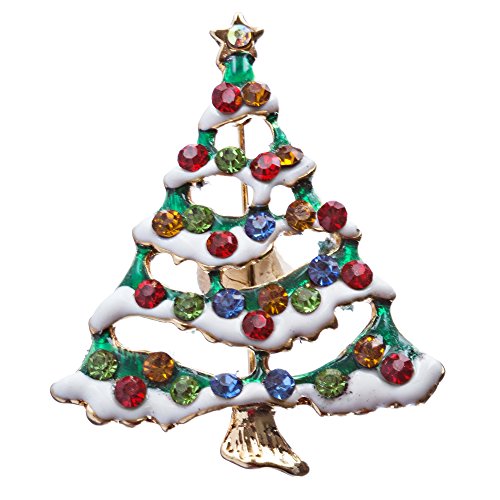 ACCESSORIESFOREVER CHRISTMAS JEWELRY CRYSTAL RHINESTONE LOVELY HOLIDAY TREE PIN BH142 MULTI