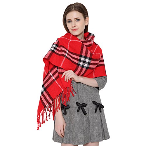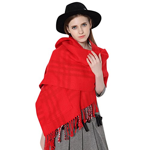 Made from artificial cashmere, this scarf feels soft, comfortable and warm. The front side is printed with checks and the reverse side is plain, either side can be worn as the outside. There are pockets to keep your hands warm and provide somewhere for storage of small items. With tassels at the hem and double-stitched edges, it combines aesthetics and durability perfectly. It's s more than a scarf since it is also great as shawl, cloak or poncho, etc. Size: 76.77 inches long and 21.65 inches wide. Since the measurements are obtained manually, slight errors may exist. Besides, there may be subtle differences in color due to lighting, shooting angle or different display devices, etc. Thanks for your understanding. 0