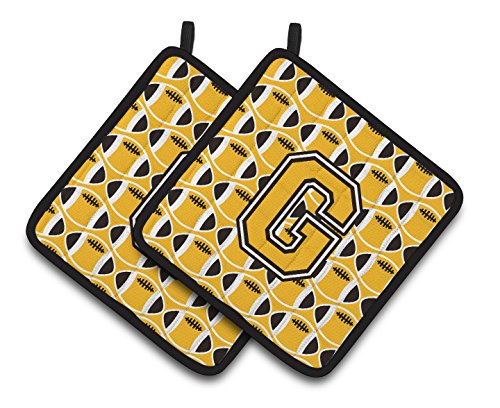 Caroline's Treasures Letter G Football black, Old Gold & White Pair of Pot Holders CJ1080-GPTHD, 7.5HX7.5W, Multicolor