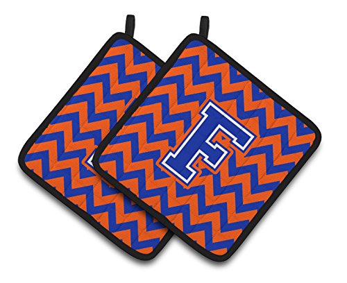 Caroline's Treasures Letter F Chevron Orange & Blue Pair of Pot Holders CJ1044-FPTHD, 7.5HX7.5W, Multicolor